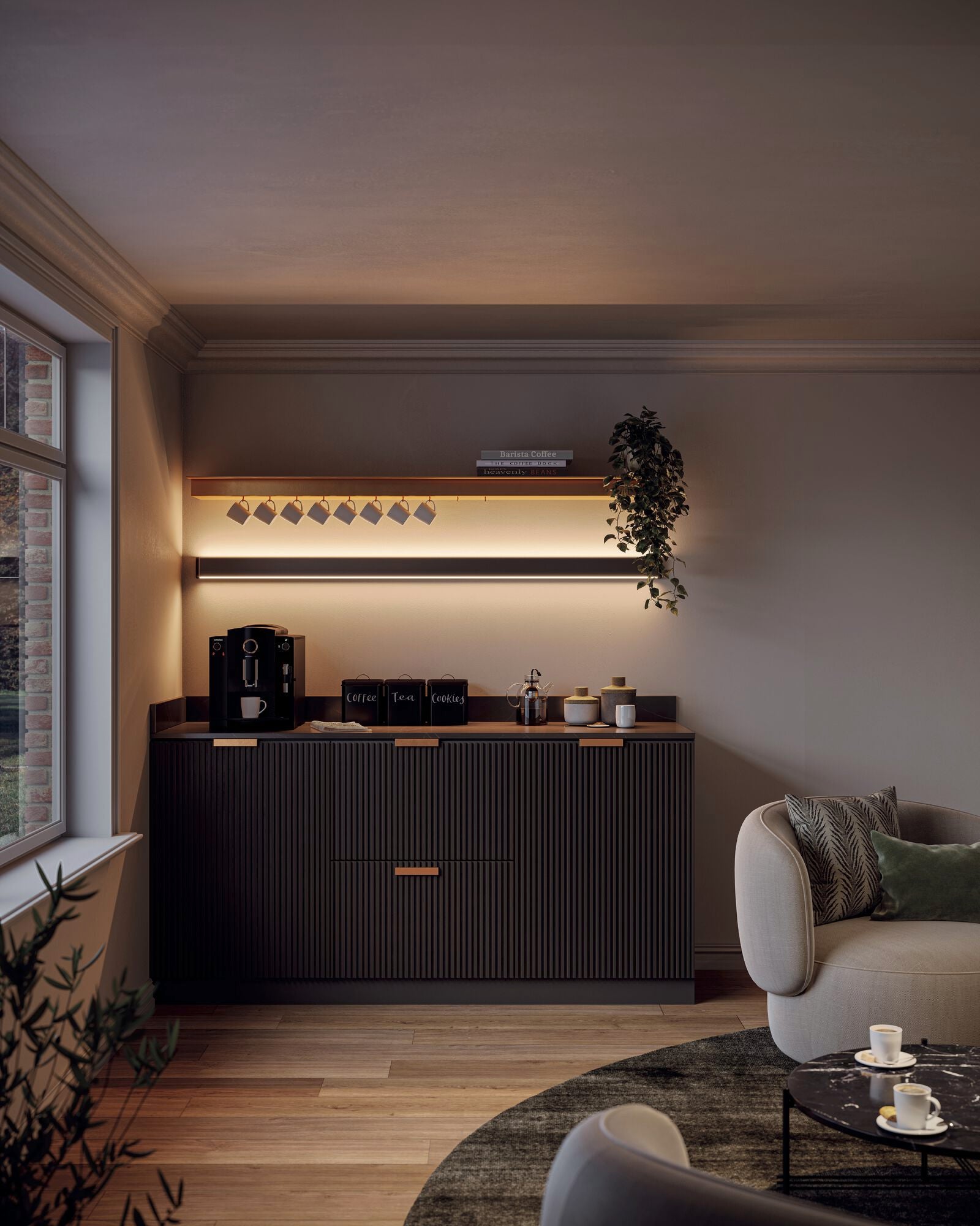 Que vous choisissiez le Novy Wall comme éclairage discret sous les placards de cuisine, comme éclairage fonctionnel au-dessus de votre plan de travail ou comme élément de design accrocheur sur un mur vide, il s'intègre dans toutes les cuisines.